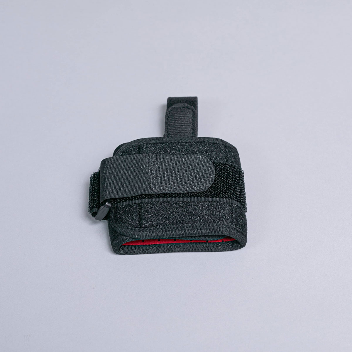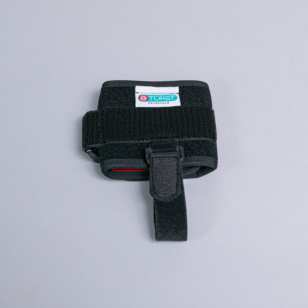 Esta órtesis consta de dos componentes principales, una cinta a nivel de tobillo con ajuste de velcro, y un soporte para fijar a nivel del calzado por medio de un anclaje central también de tipo velcro, lo que permite un ajuste según necesidad y comodidad del usuario. El material es acolchado para entregar mayor confort y evitar fricciones y compresiones no deseadas.