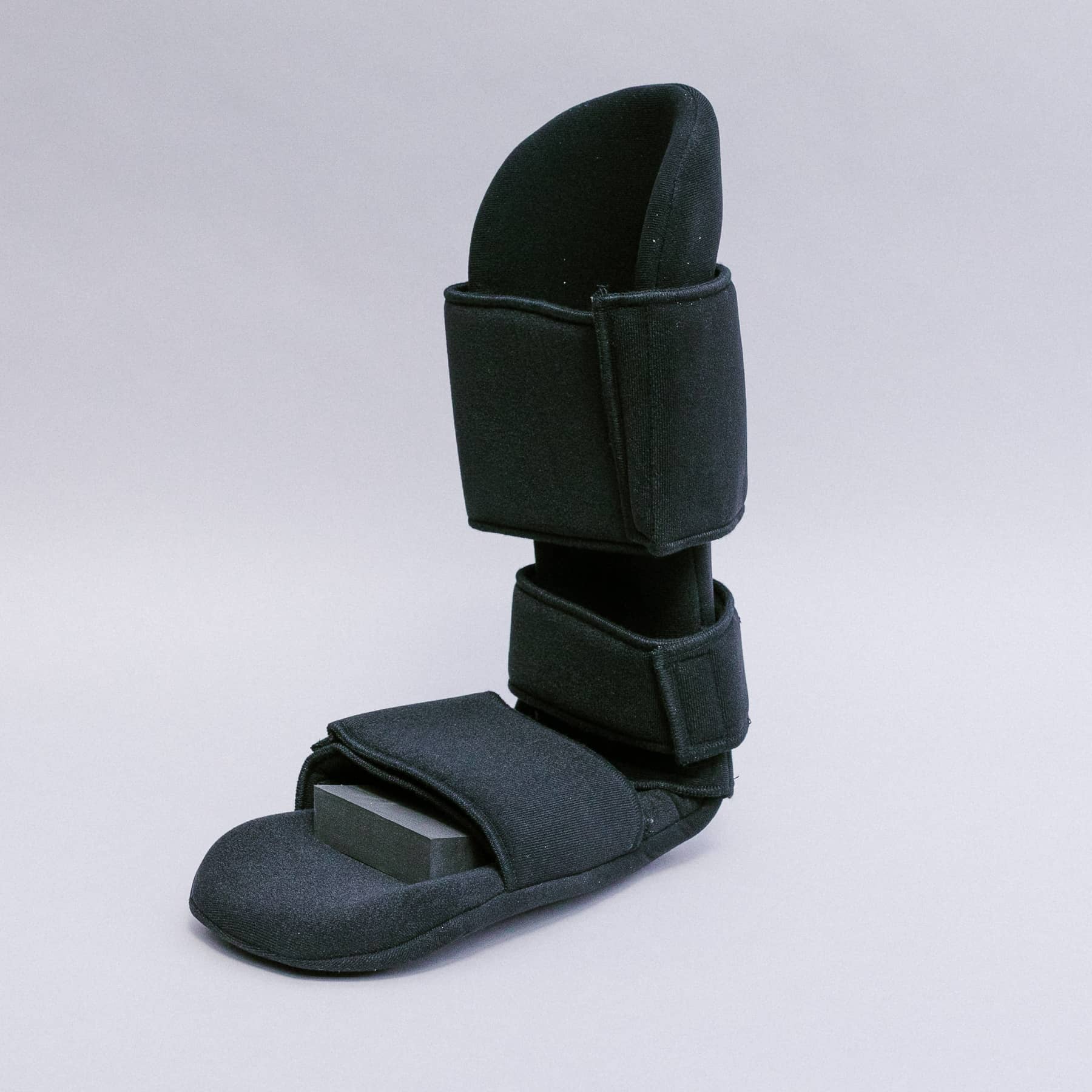 Órtesis de estructura semirígida (termoplástico) full acolchado plástico. Posiciona el pie en un ángulo de 90° y es una órtesis de elección intermedia entre un tope rígido y uno de espuma. Posee un abundante acolchado interno que evita lesiones por fricción, compresiones no deseadas y entrega mayor confort al usuario. Su uso también está recomendado para usuarios de unidades de paciente crítico